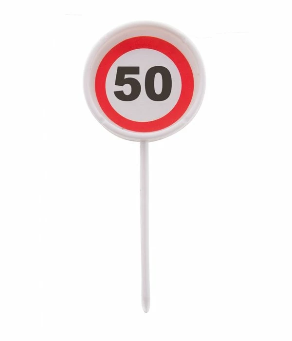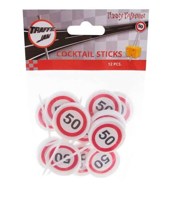 – 12 herbruikbare coctailprikkers verkeersbord 50 jaar