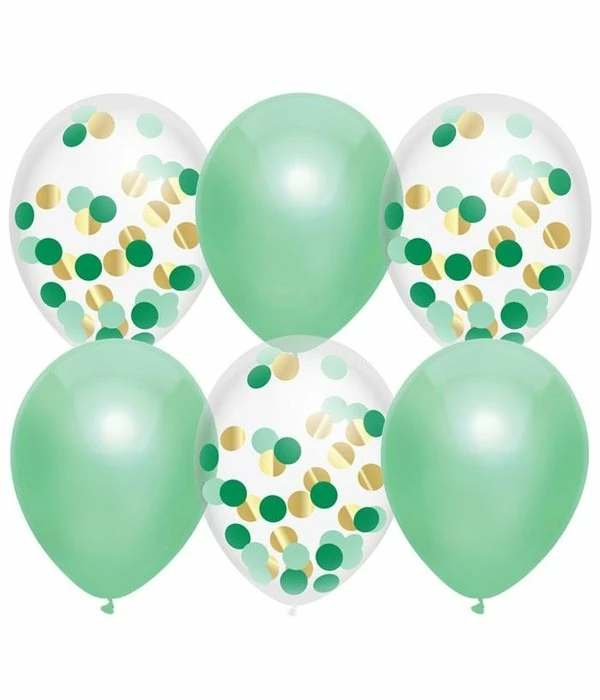 – Inhoud: 3 mintgroene ballonnen en 3 transparante confetti ballonnen