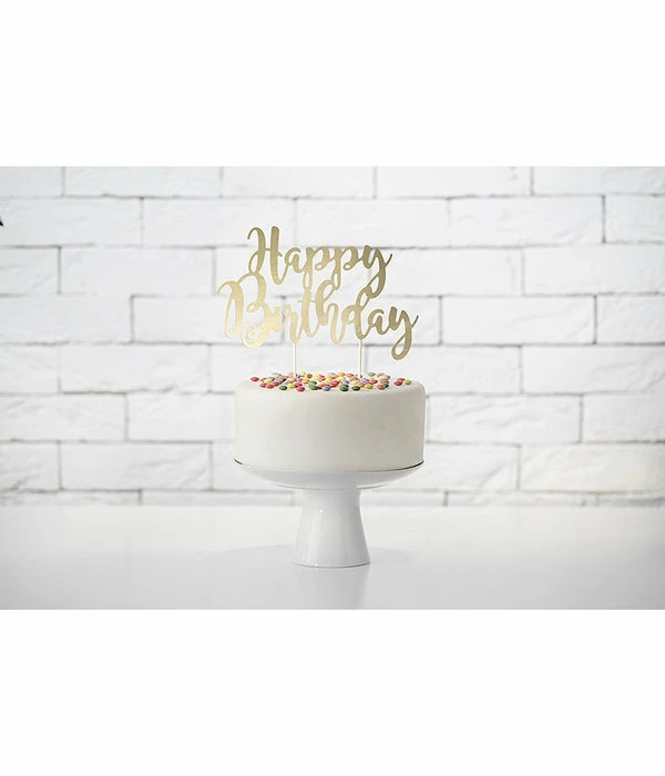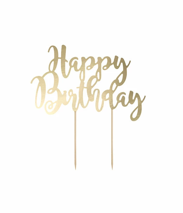 – Cake topper Happy Birthday goud