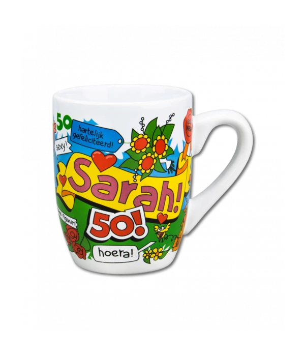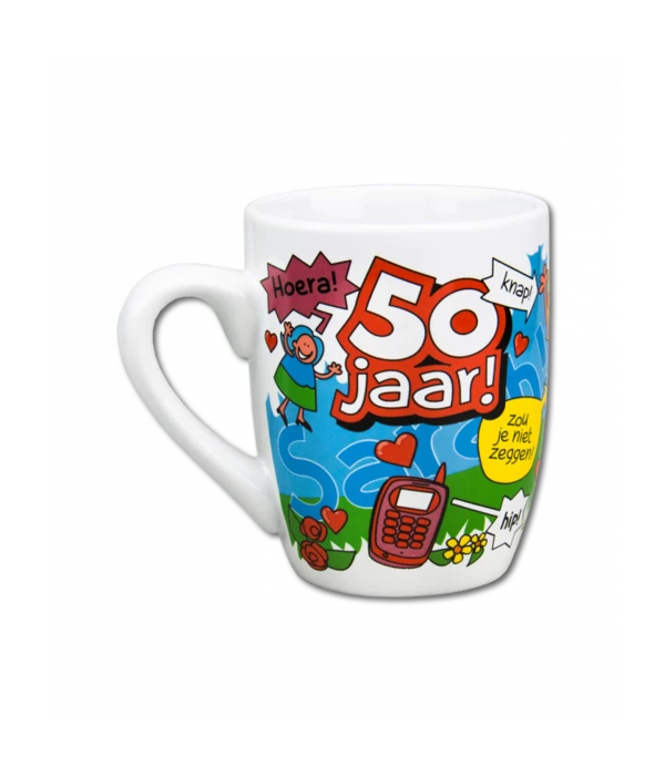 – De mok is rondom bedrukt met leuke teksten en tekeningen