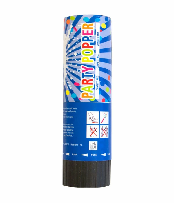 Geef kleur aan jouw party met deze leuke confetti shooter! Het geeft een wolk van confetti in een vrolijke mix van verschillende kleuren. Draai aan de onderkant van de kanon voor een confetti regen van 2 tot 3 meter! In handzaam formaat van 15 cm.