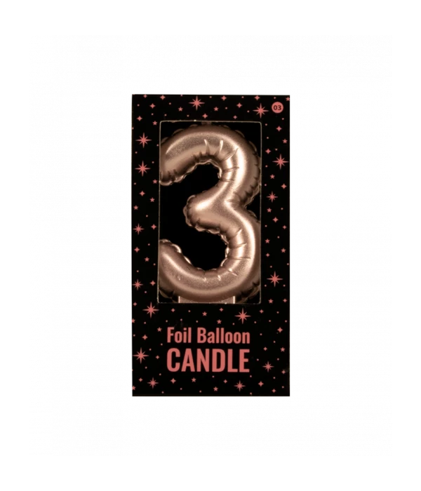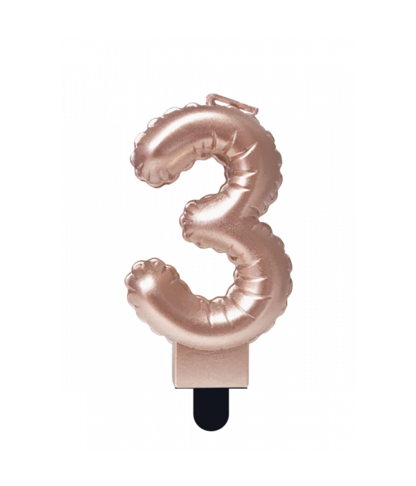 – Folie Ballon Kaarsje Cijfer ‘3’ Rose Goud