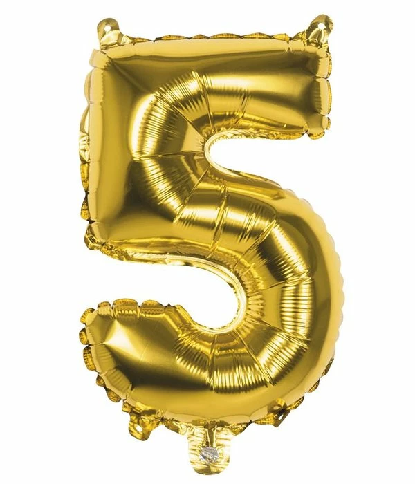 – Folieballon Cijfer ‘5’ Goud 36cm