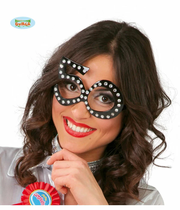 Funbril 50 met steentjes zwart