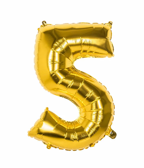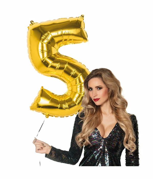 – Gouden Folieballon Cijfer 5