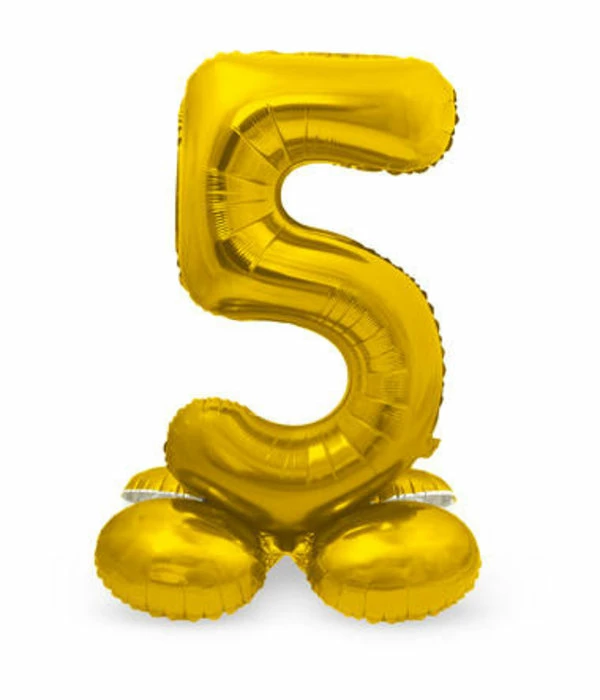 – Goudkleurig Folieballon Cijfer 5 op Standaard