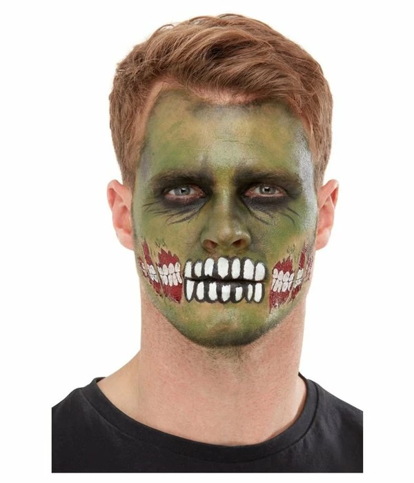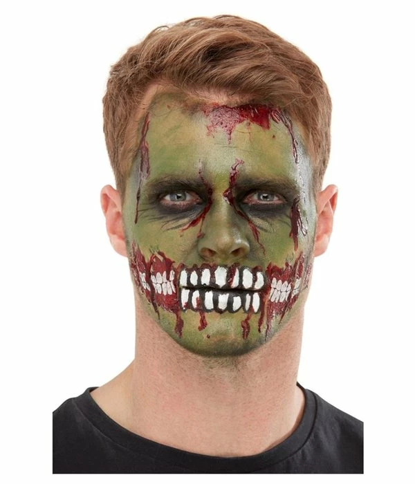 – Bestaande uit: zombie Face Transfer (tanden ‘zie afbeelding 2’), Groene Schmink, nepbloed, kwasten & Spons
