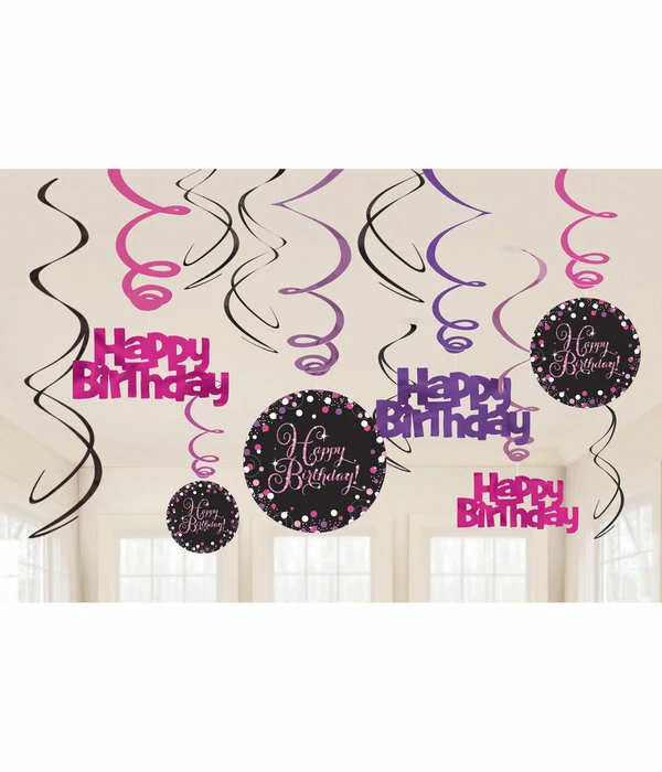 – Happy Birthday Hangdecoratie Swirl Mix Pink