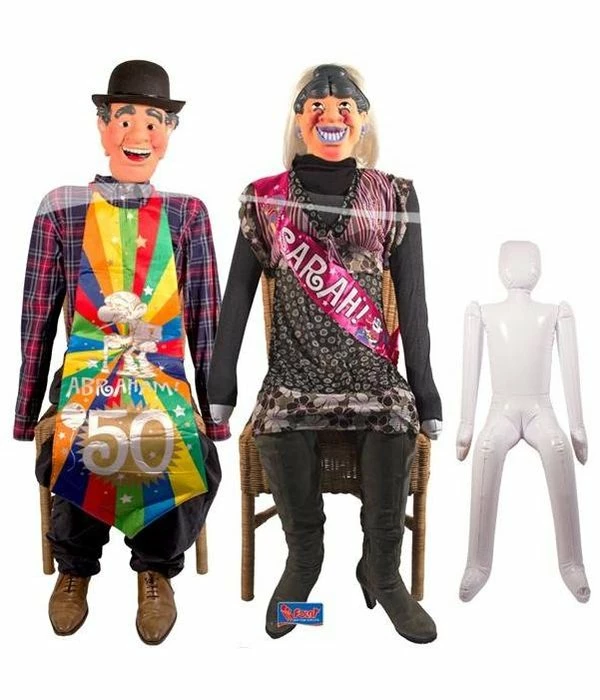 Deze opblaaspop kan zowel als Abraham en Sarah door het leven! Onmisbaar bij de aankleding van de ruimte waar de 50-jarige gelukkige zich bevindt!